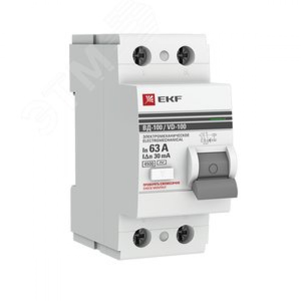 Выключатель дифференциального тока (УЗО) ВД-100 2P 63А/30мА (электромеханическое) PROxima 0 1133 ₽
