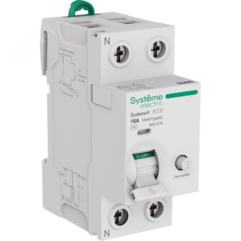 Технические характеристики Выключатель дифференциального тока (ВДТ) 16A 2P 10мА Тип-AC 230В Systeme9