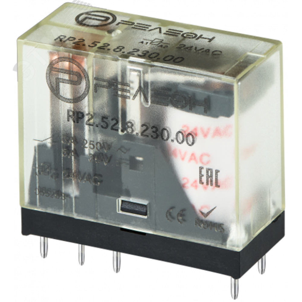 Миниатюрное промежуточное реле, 2 перекидных контакта 5А, 230В AC