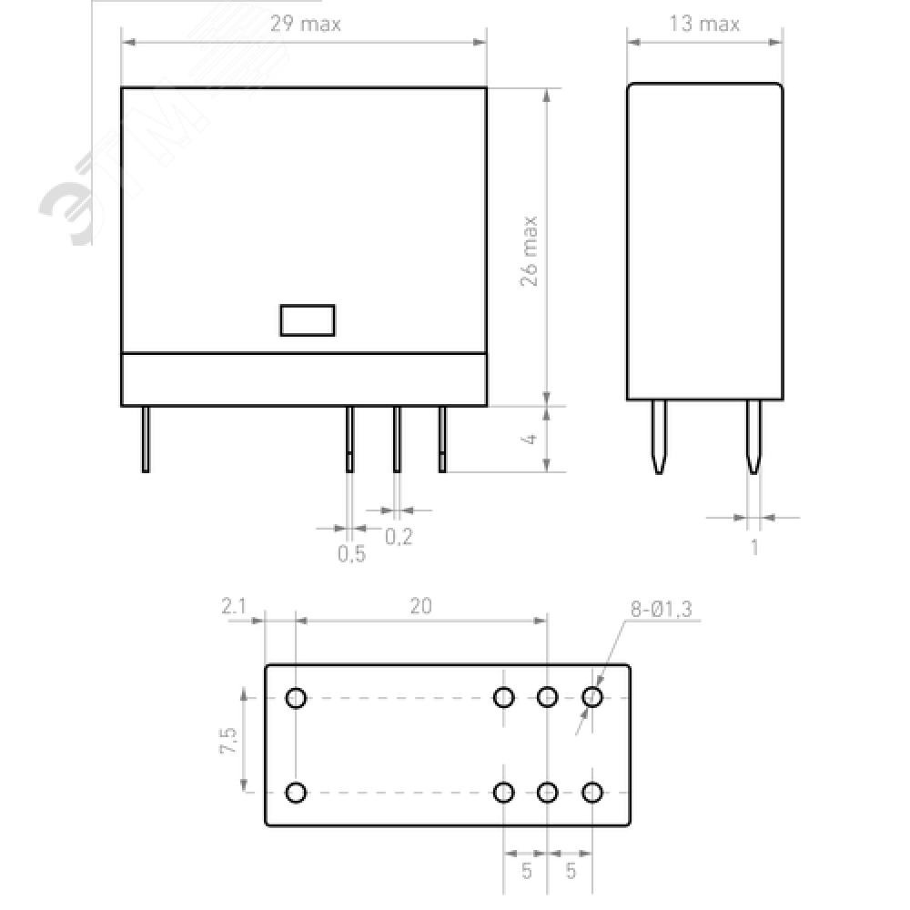 Технические характеристики Миниатюрное промежуточное реле, 2 перекидных контакта 5А, 230В AC