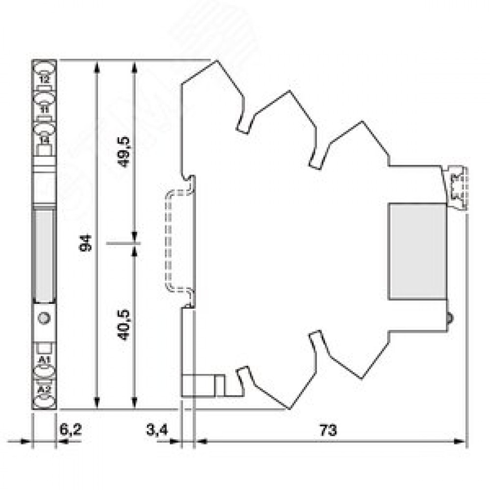 Технические характеристики Модуль интерфейсный реле, 1 перекидной контакт 6А 230В AC/DC пружинные зажимы