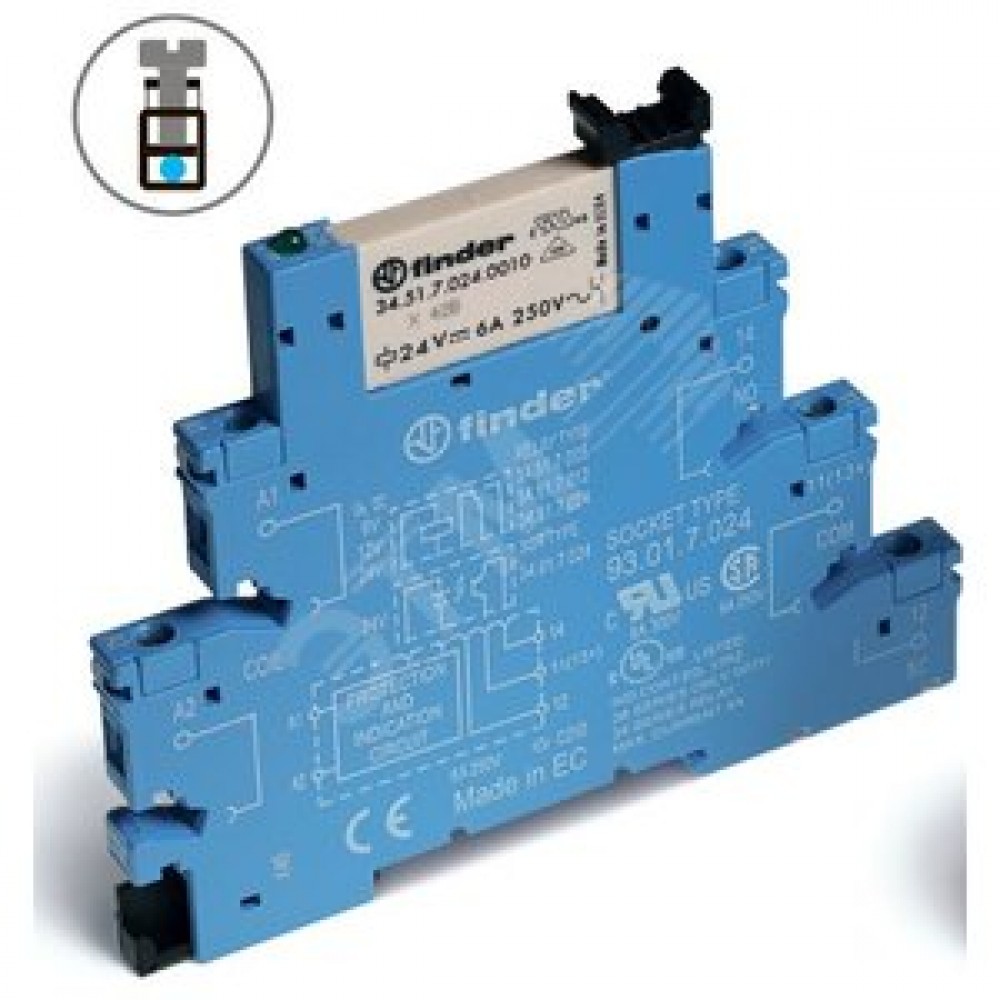 Модуль интерфейсный сборка 34.51.7.024.0010 + 93.01.0.024, электромеханическое реле, 1CO 6A, контакты AgNi, питание 24В AC/DC, IP20, винтовые клеммы