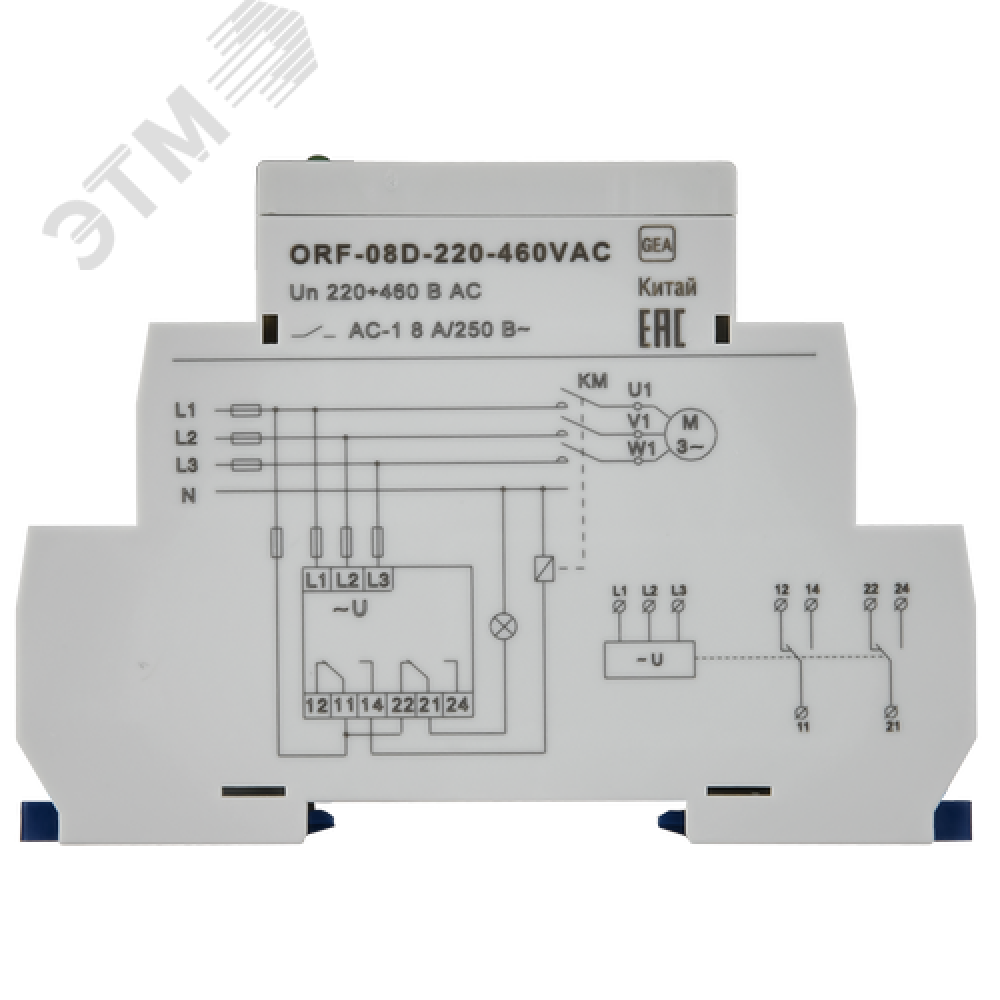 Технические характеристики Реле фаз ORF-08D трехфазное 2 контакта 220-460В AC