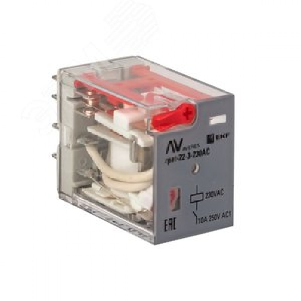 Технические характеристики Реле промежуточное с кнопкой и мех. Индикацией RPAt 22/3 10A 230В AC AVERES