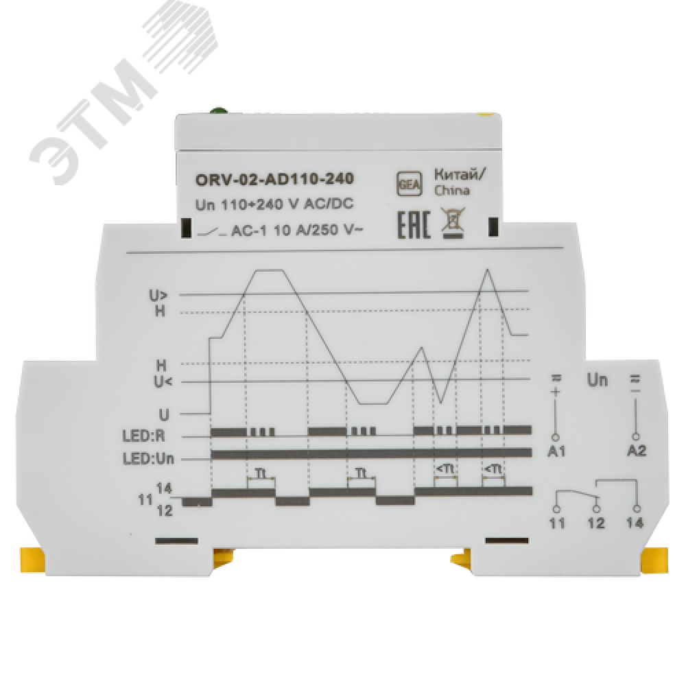 Технические характеристики Реле повышения напряжения ORV. 1ф 110-240 В AC/DC