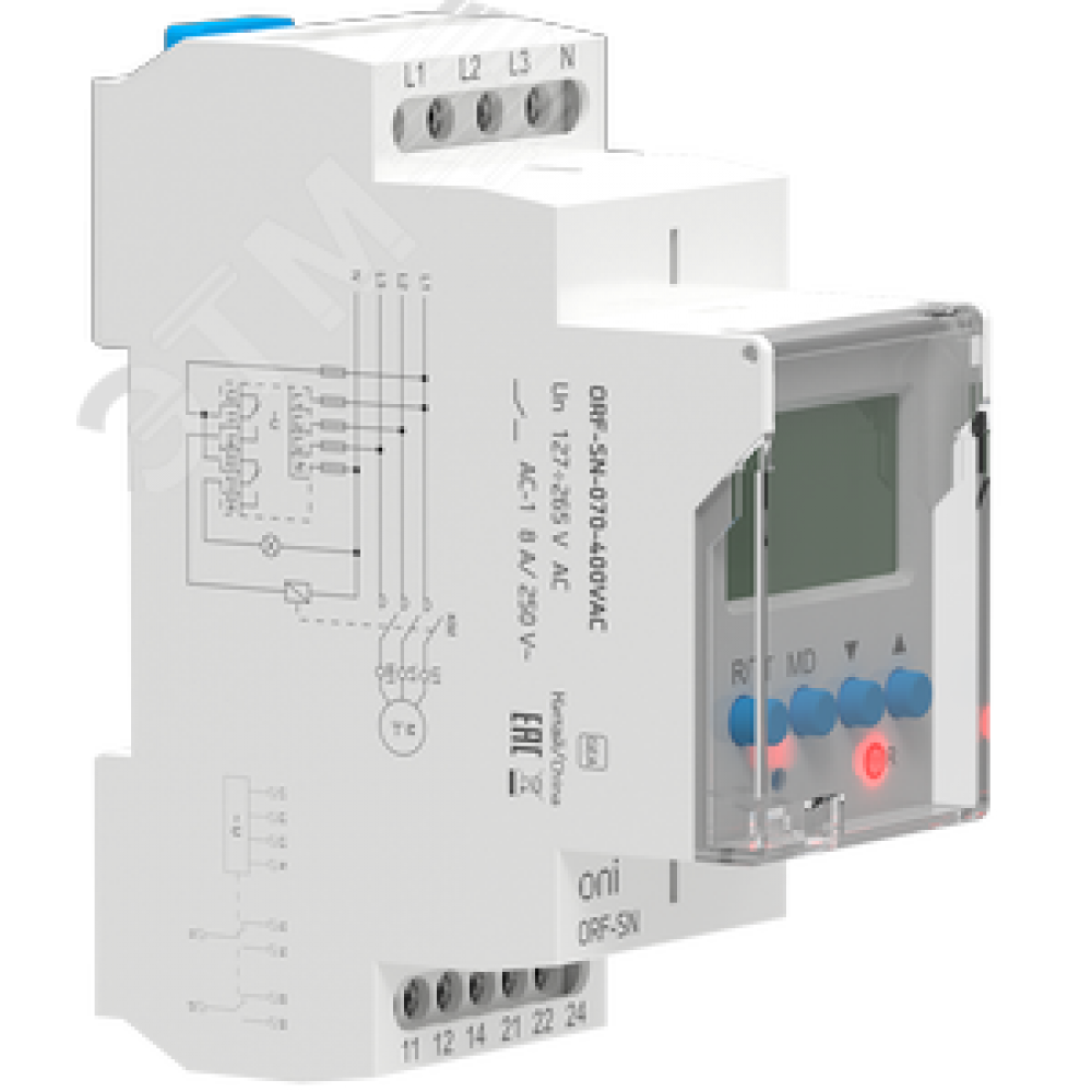 Технические характеристики Реле фаз ORF-SN трехфазное 2 контакта 70-400В AC с контролем нейтрали