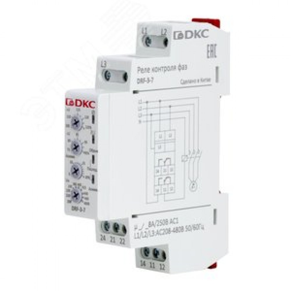 Технические характеристики Реле контроля фаз, 3 фазы, контроль напряжения , контроль обрыва фаз, котроль чередования фаз, контроль асимметрии, конфигурация контакта 2CO, 208-480В