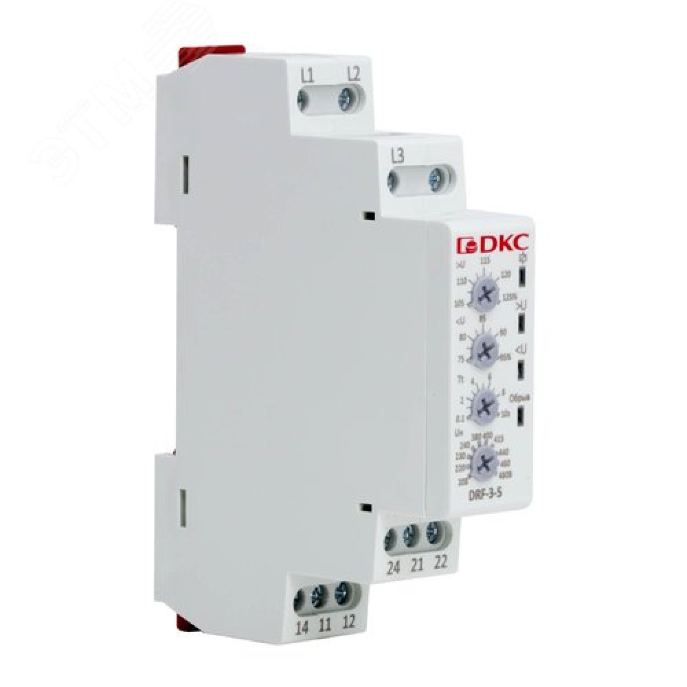 Реле контроля фаз, 3 фазы + N, тип DRF, контроль напряжения, контроль обрыва фаз, конфигурация контакта 2CO, 120-277В