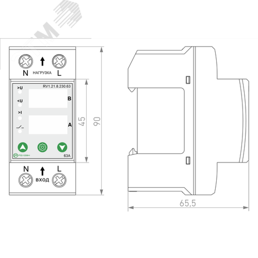 Технические характеристики Реле контроля напряжения и тока 1L 230В AC 63А