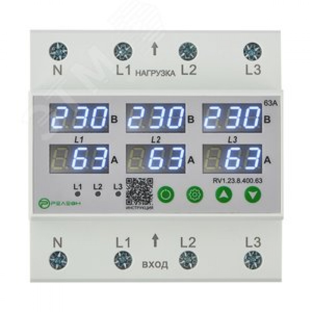 • Реле контроля напряжения и тока 3L 400В AC 63А