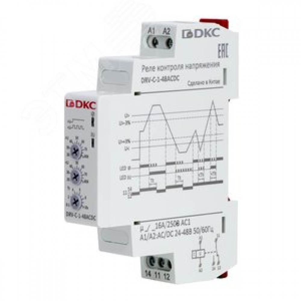 Технические характеристики Реле контроля напряжения однофазное, конфигурация контакта 1CO, 24-48В AC/DC