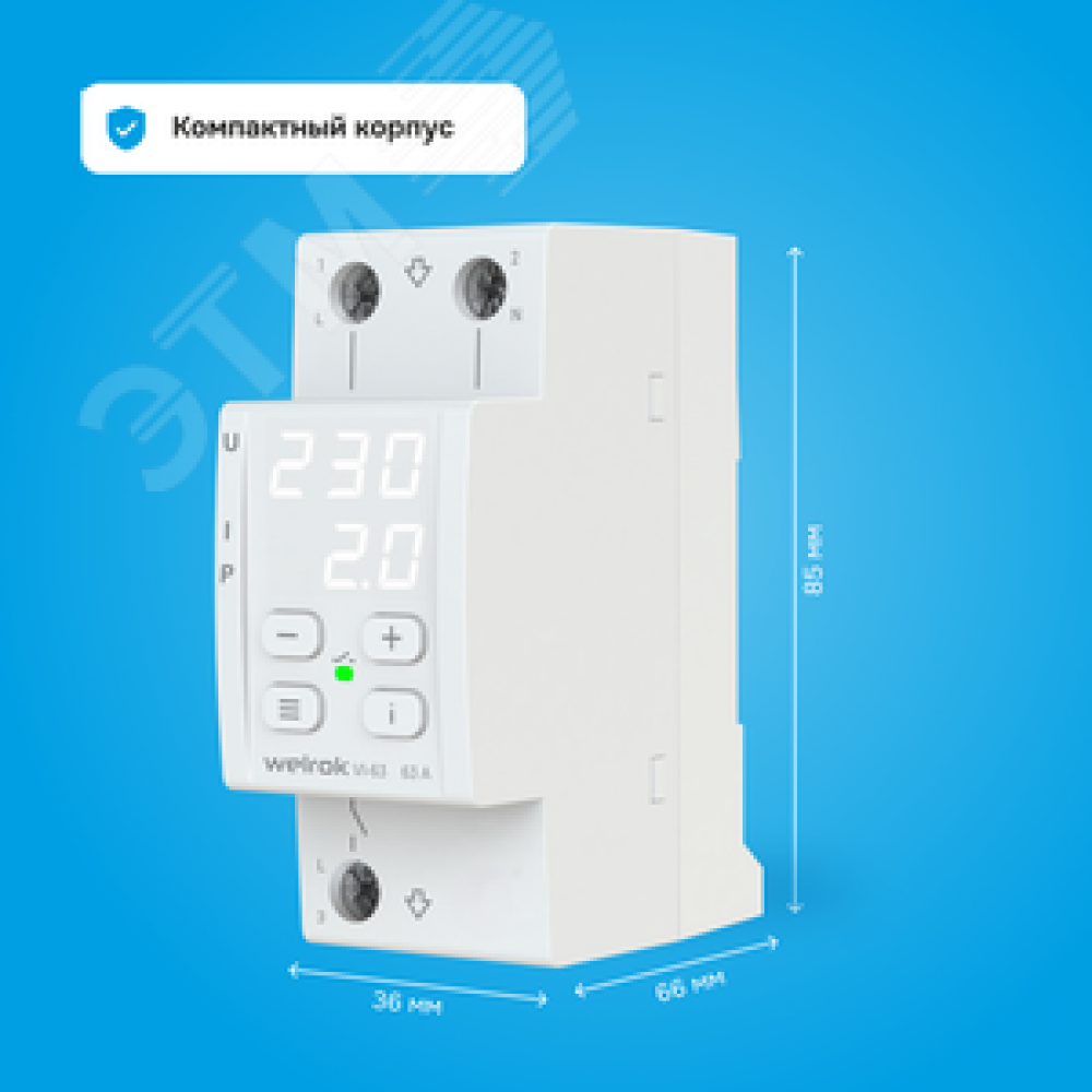 На складе Код товара: etm-5031640 Реле напряжения c контролем тока VI-32 32 А