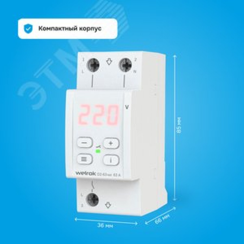 Технические характеристики Реле напряжения c контролем тока 63 А