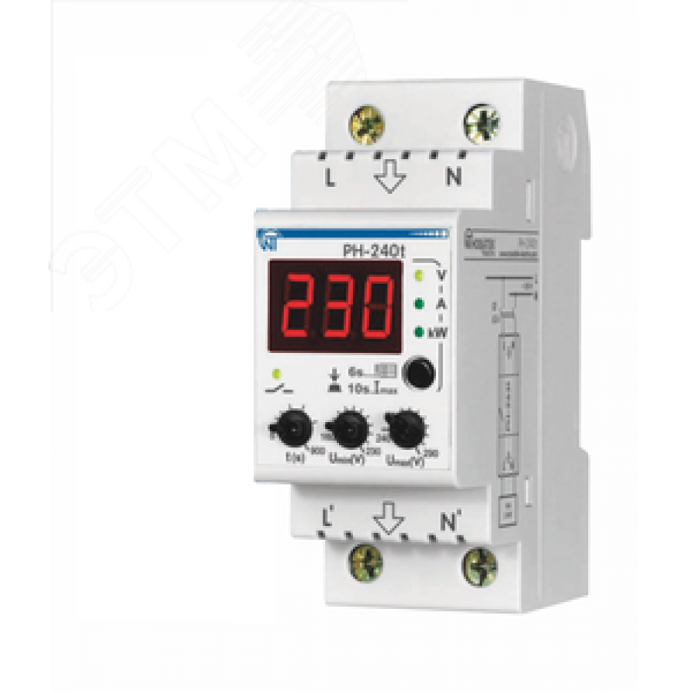 • Реле напряжения РН-240Т 40А с термозащитой, ограничение тока, 2 DIN