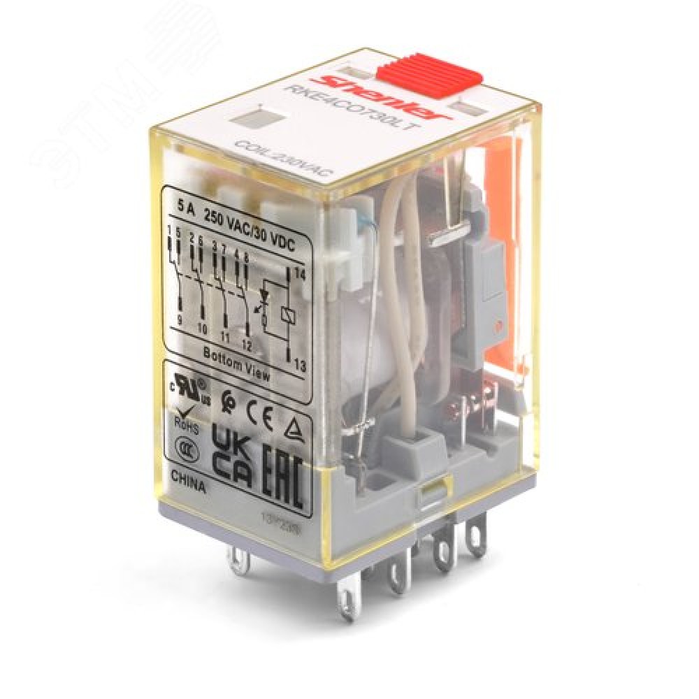 Реле промежуточное, тест-кнопка с блокировкой