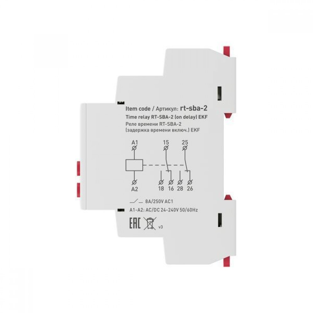 Технические характеристики Реле времени RT-SBA-2 (задержка времени включ.) PROxima EKF rt-sba-2