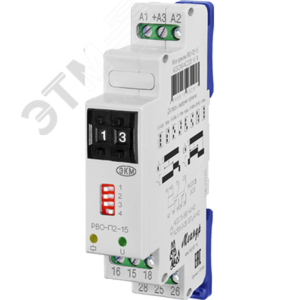 • Реле времени РВО-П2-15 0.1с-9.9ч 24В/220В УХЛ4 задержка на включение или отключение, дискретная установка, 2 переключающих контакта