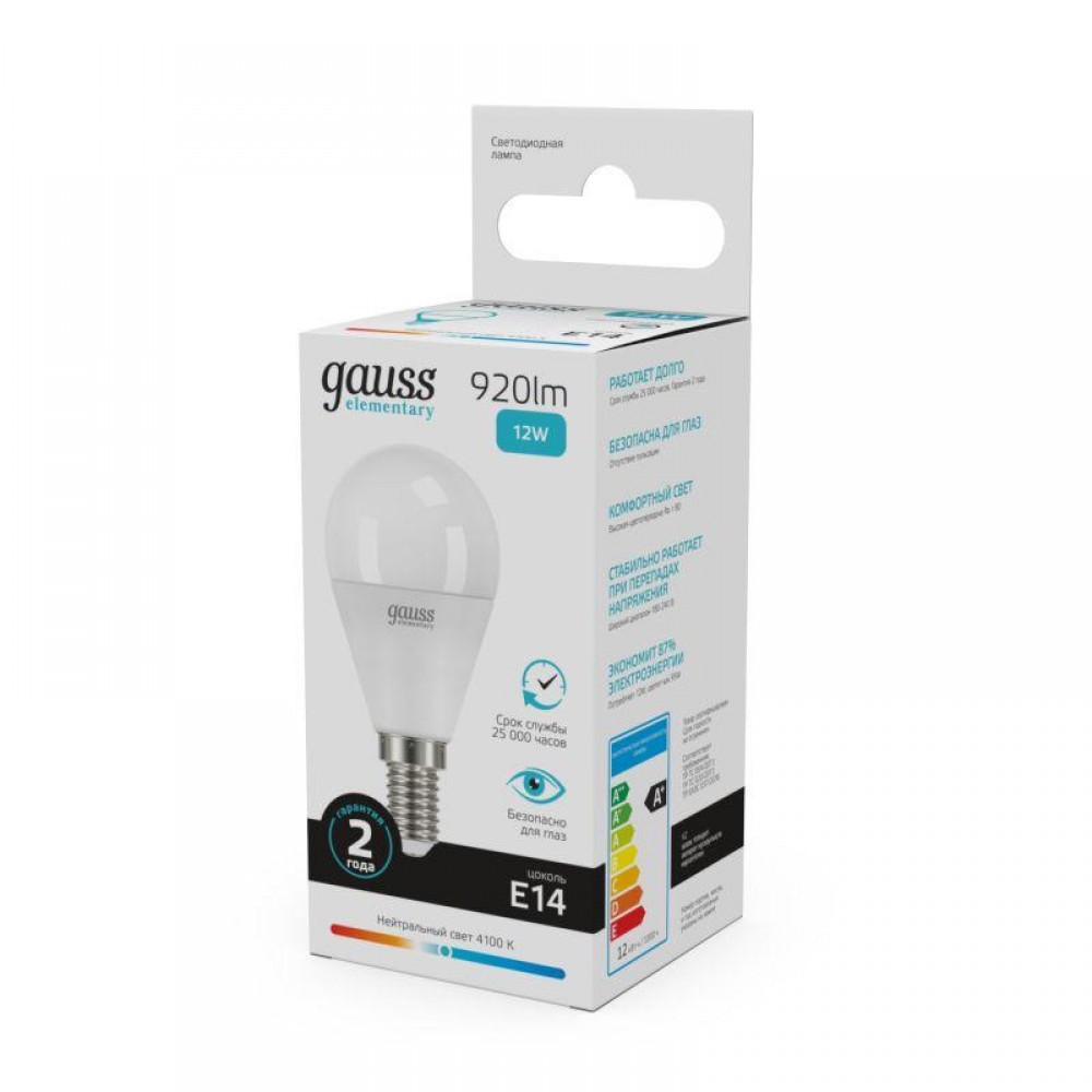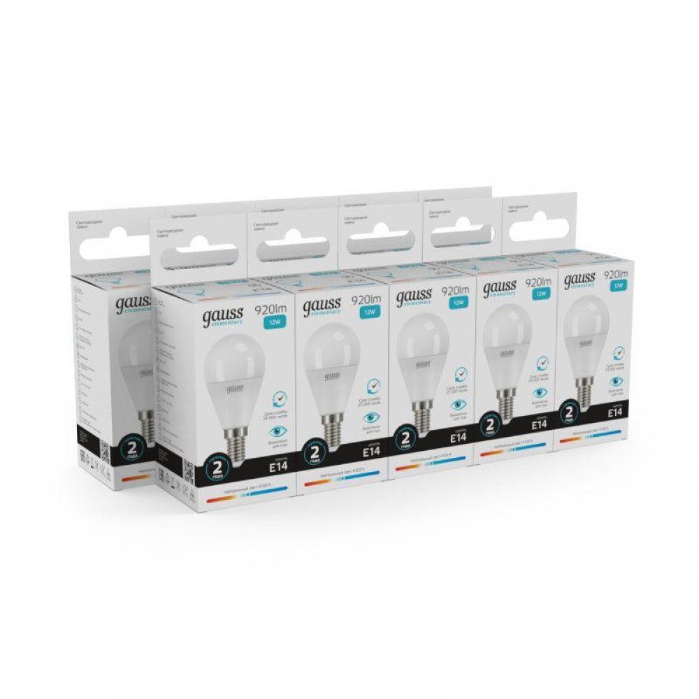 Технические характеристики Лампа светодиодная Elementary 12Вт P45 шар 4100К нейтр. бел. E14 920лм GAUSS 53122