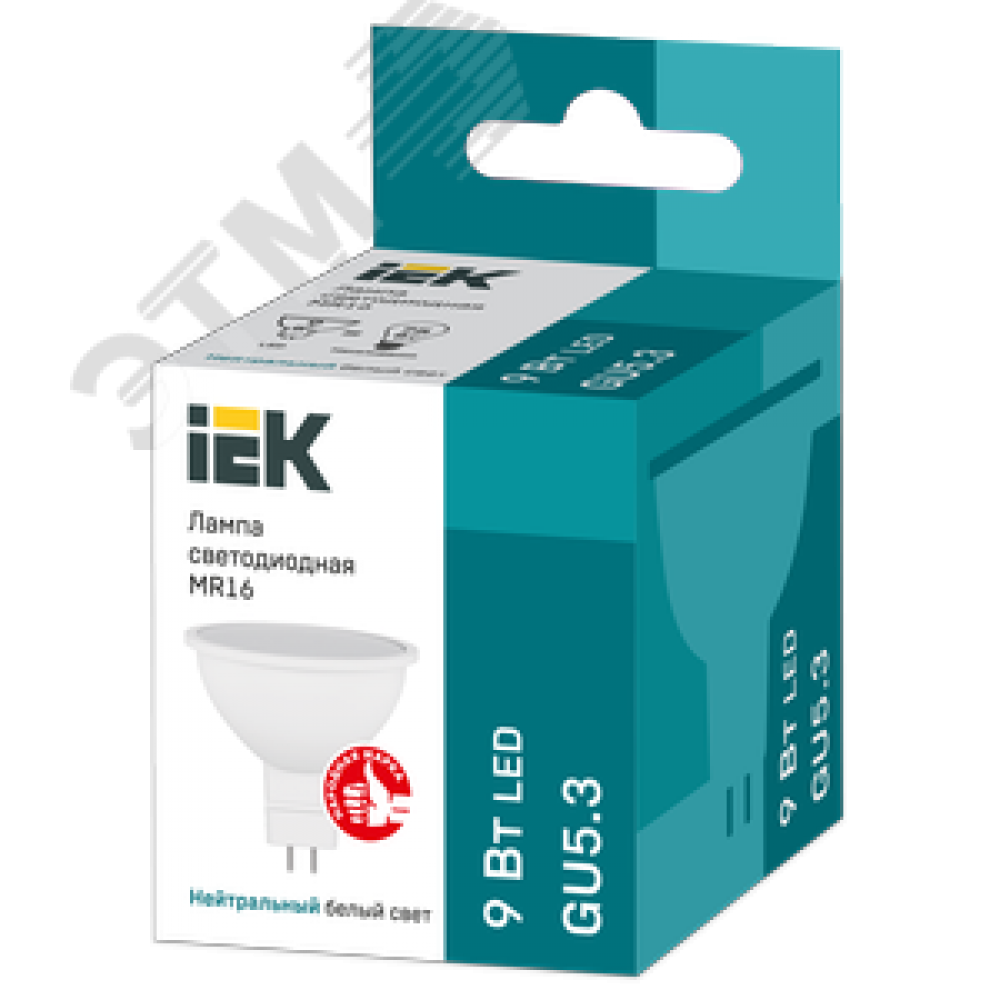 Технические характеристики Лампа светодиодная MR16 софит 9Вт 230В 4000К GU5.3