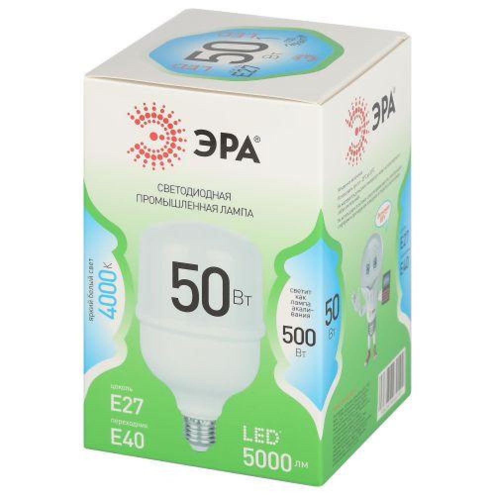Технические характеристики Лампа светодиодная GREEN LINE POWER T100-50W-840-E27/E40 GL 50Вт колокол 4000К яркий свет бел. E27/E40 Эра Б0067034