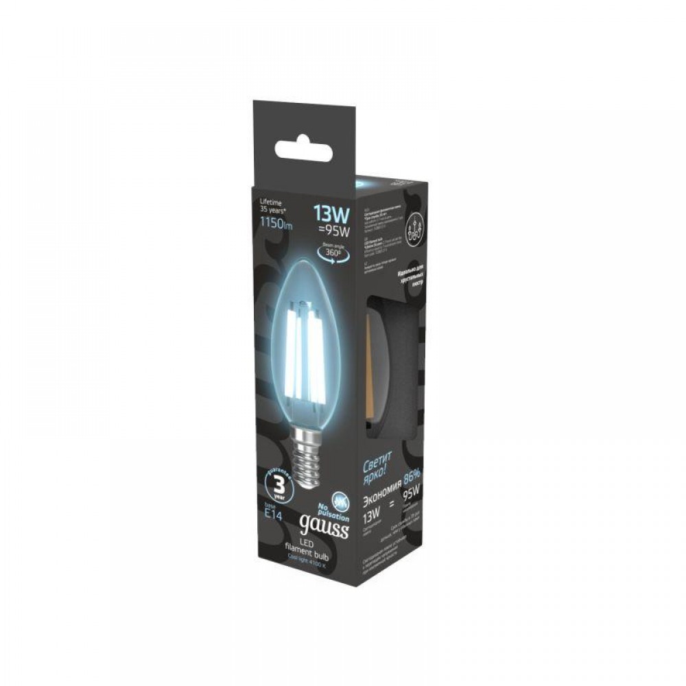 Лампа светодиодная филаментная Black Filament 13Вт свеча 4100К нейтр. бел. E14 1150лм GAUSS 103801213