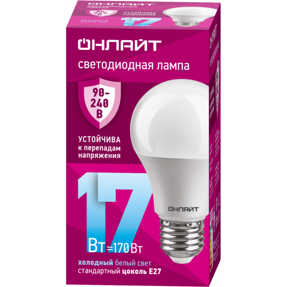 Лампа светодиодная 90 404 OLL-A60-17-230-6.5K-E27 17Вт грушевидная 6500К E27 90-240В PRO ОНЛАЙТ 90404