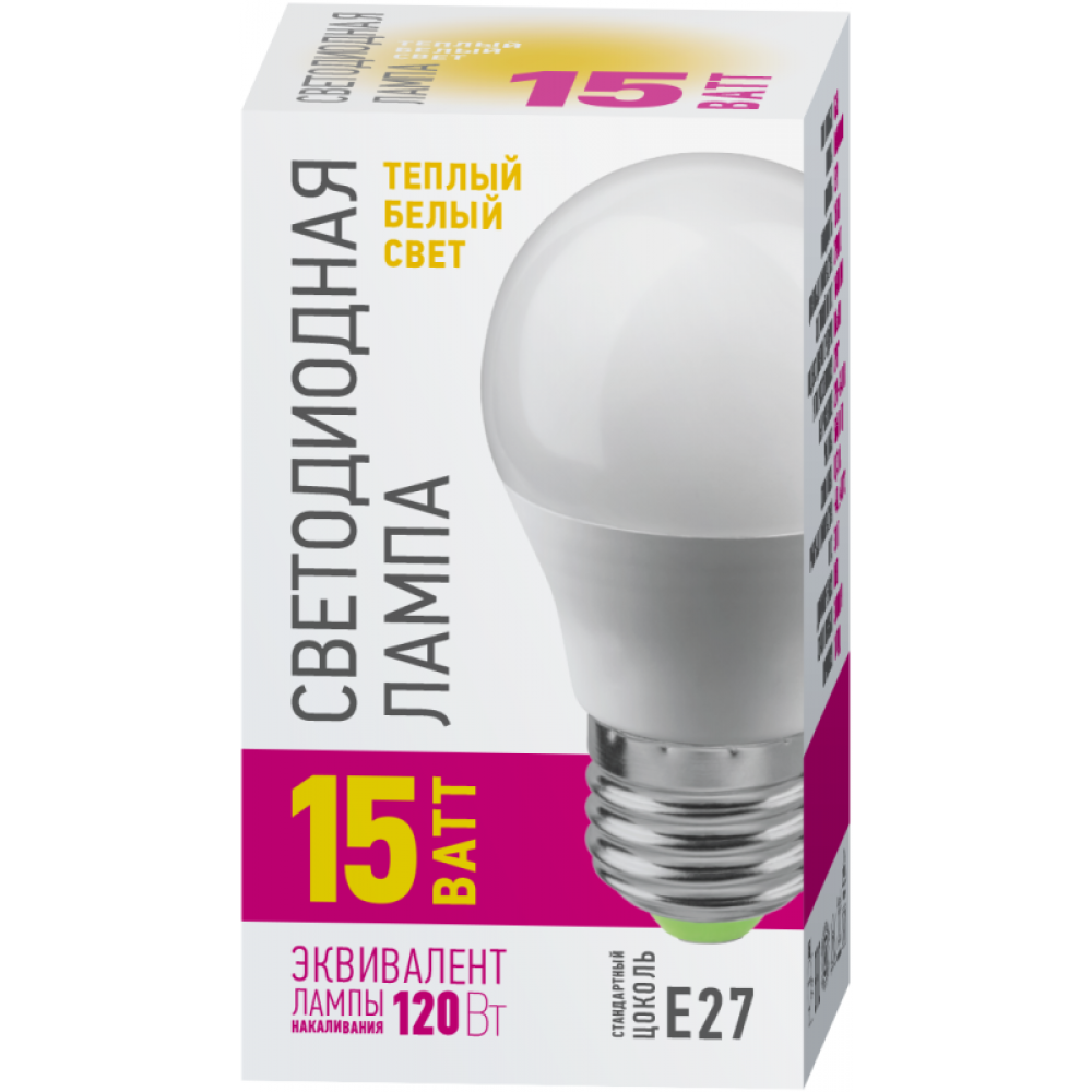 Технические характеристики Лампа светодиодная 90 437 OLL-G45-15-230-2.7K-E27-PROMO 15Вт шар 2700К E27 220-240В ОНЛАЙТ 90437