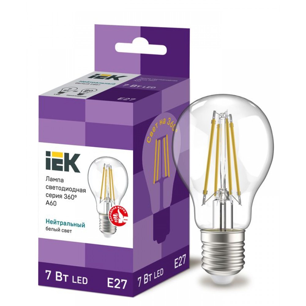 Лампа LED A60 груша прозр. 7Вт 230В 4000К E27 серия 360° IEK с нитевидным светодиодом (филаментная нить) является одним из самых эффективных источников света.