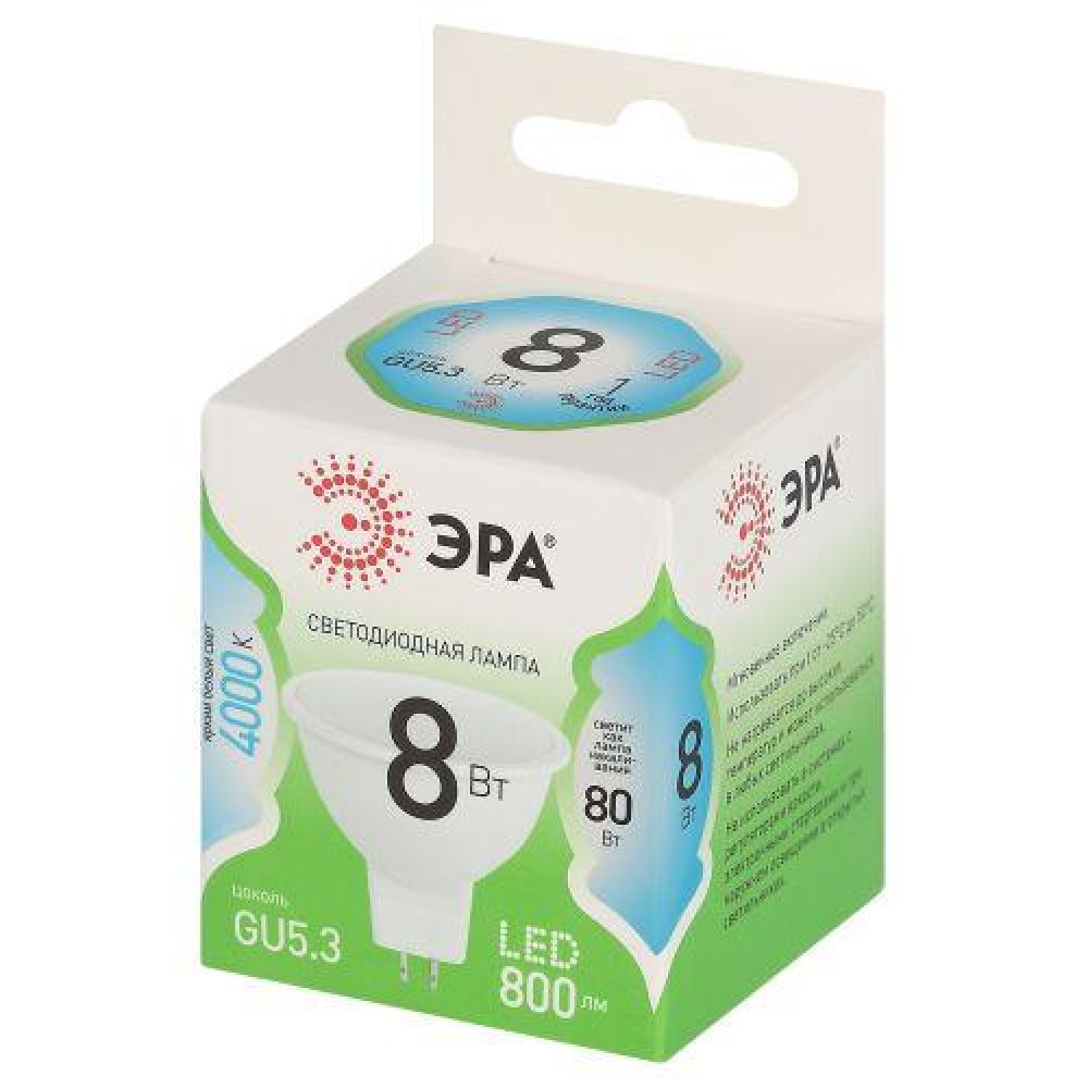 Светодиодная лампа ЭРА LED MR16-8W-840-GU5.3 GL серии Green Line — современный и энергоэффективный источник света. Лампочка мощностью 8 Вт с цоколем GU5.3 излучает нейтральный белый свет (4000K) без мерцания. Форма MR16 с отражателем обеспечивает направленный световой поток и идеально подходит для акцентного и основного освещения: в точечных светильниках, трековых системах, витринах и подвесных конструкциях. Потребляет минимум энергии, не нагревается, устойчива к перепадам напряжения и обеспечивает стабильное свечение. Работает от сети 220 В, эквивалентна 80 Вт лампе накаливания. Отличное решение для дома, офисов, магазинов, кафе и гостиниц.
