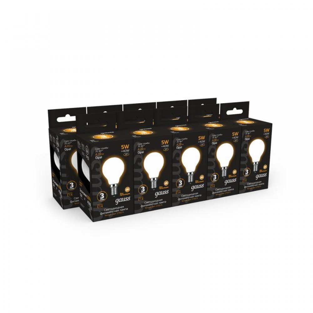 Технические характеристики Лампа светодиодная филаментная Black Filament 5Вт P45 шар матовая 2700К тепл. бел. E14 420лм GAUSS 105201105