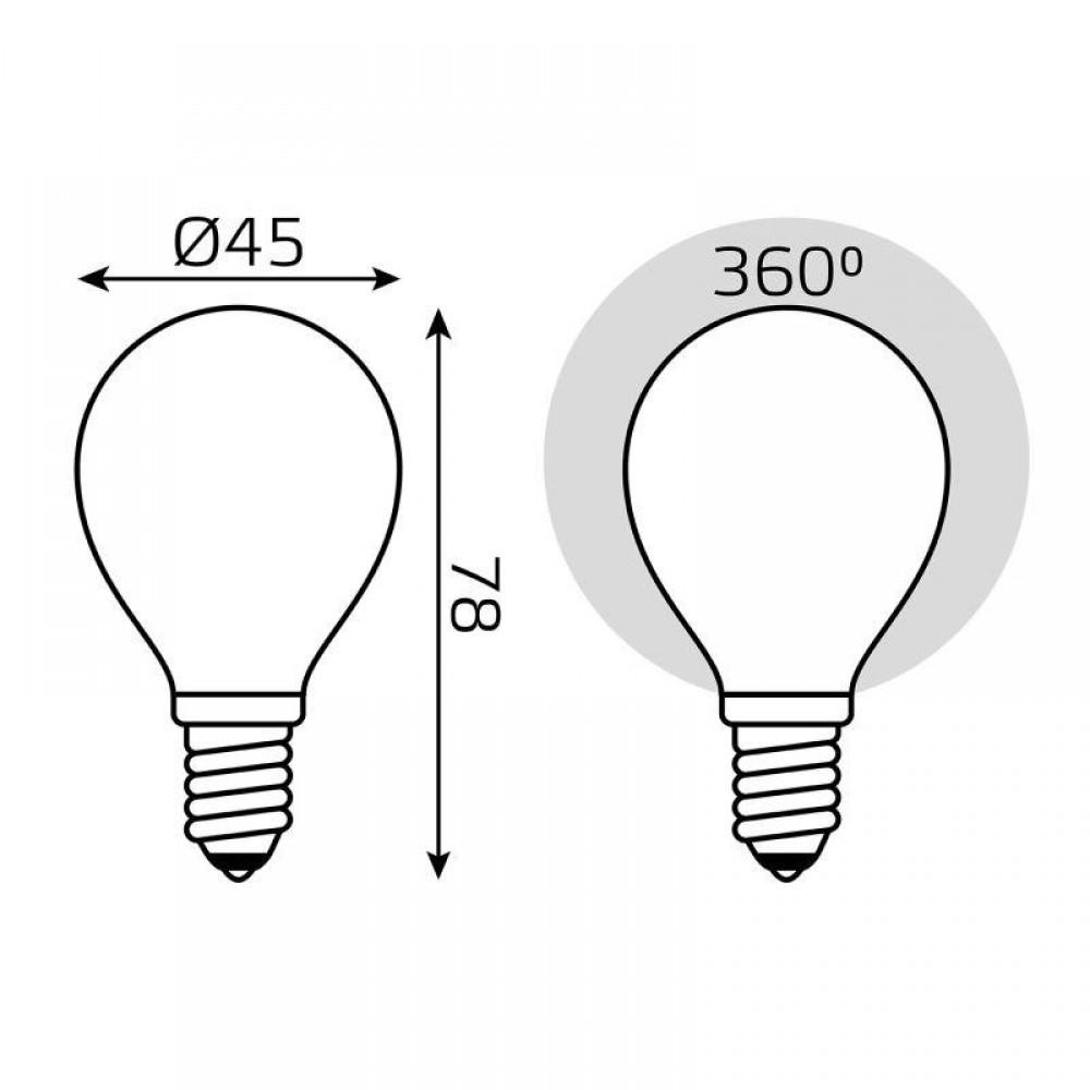 Технические характеристики Лампа светодиодная филаментная Black Filament 5Вт P45 шар матовая 4100К нейтр. бел. E14 450лм GAUSS 105201205