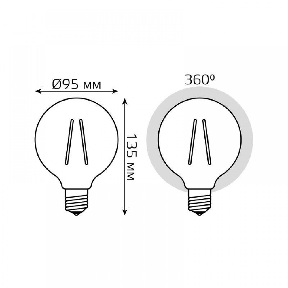 Технические характеристики Лампа светодиодная филаментная Black Filament 6Вт G95 шар 2700К тепл. бел. E27 630лм GAUSS 105802106