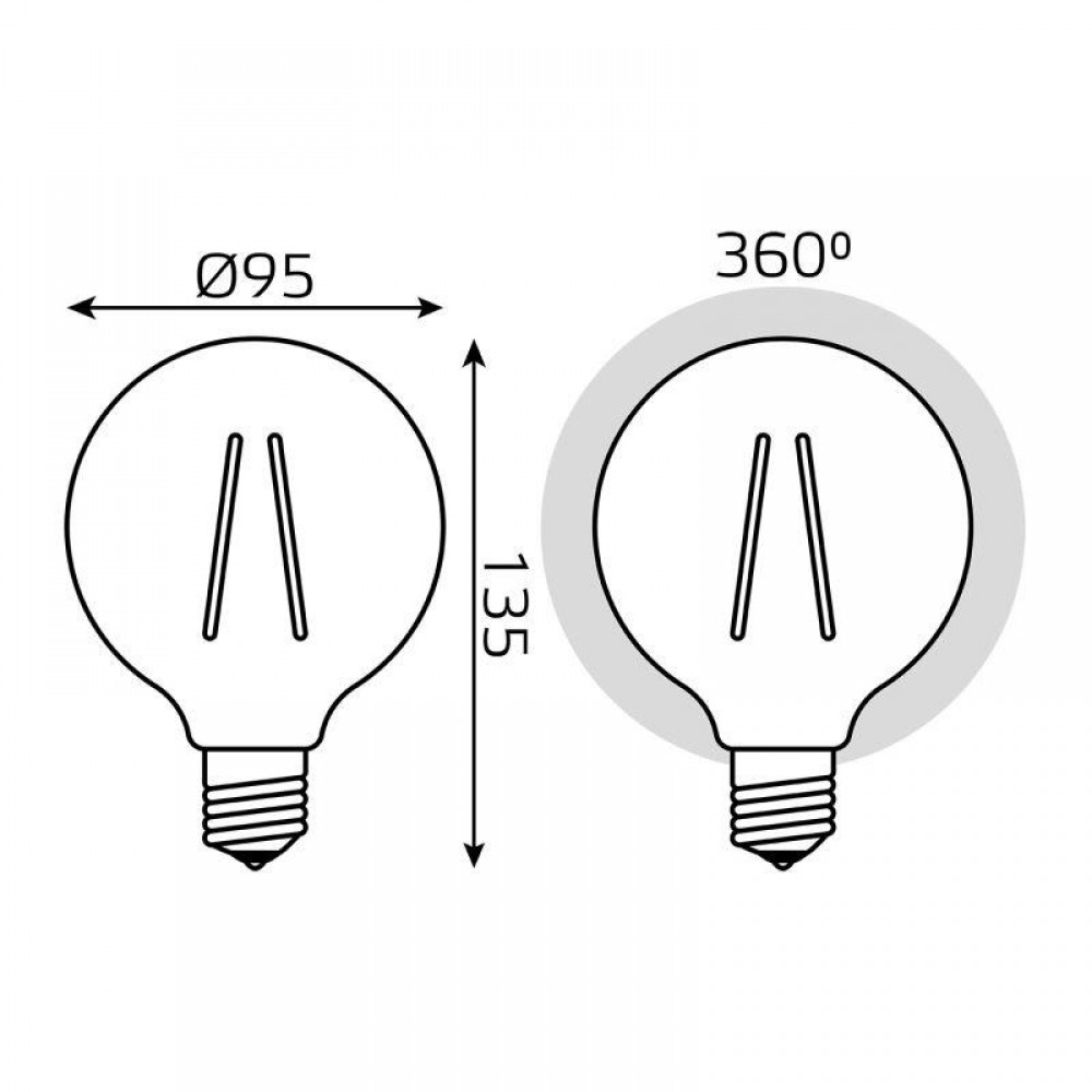 Технические характеристики Лампа светодиодная филаментная Black Filament 6Вт G95 шар золотая 2400К тепл. бел. E27 550лм GAUSS 105802006