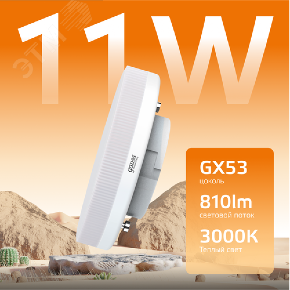 Технические характеристики Лампа светодиодная LED 11 Вт 810 лм 3000К таблетка теплый GX53 AC 220В Elementary