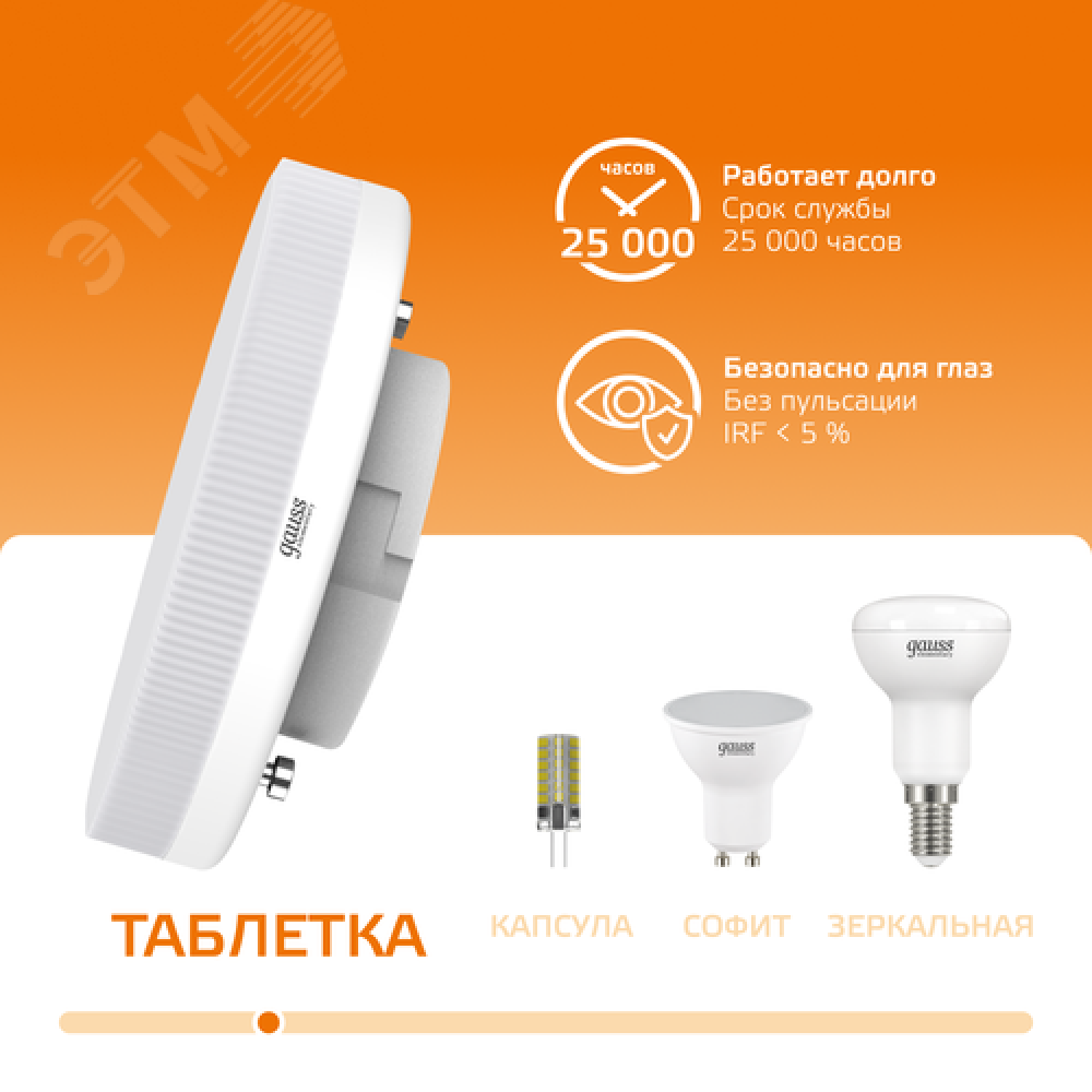 На складе Код товара: etm-7772351 Лампа светодиодная LED 12вт GX53 дневной таблетка