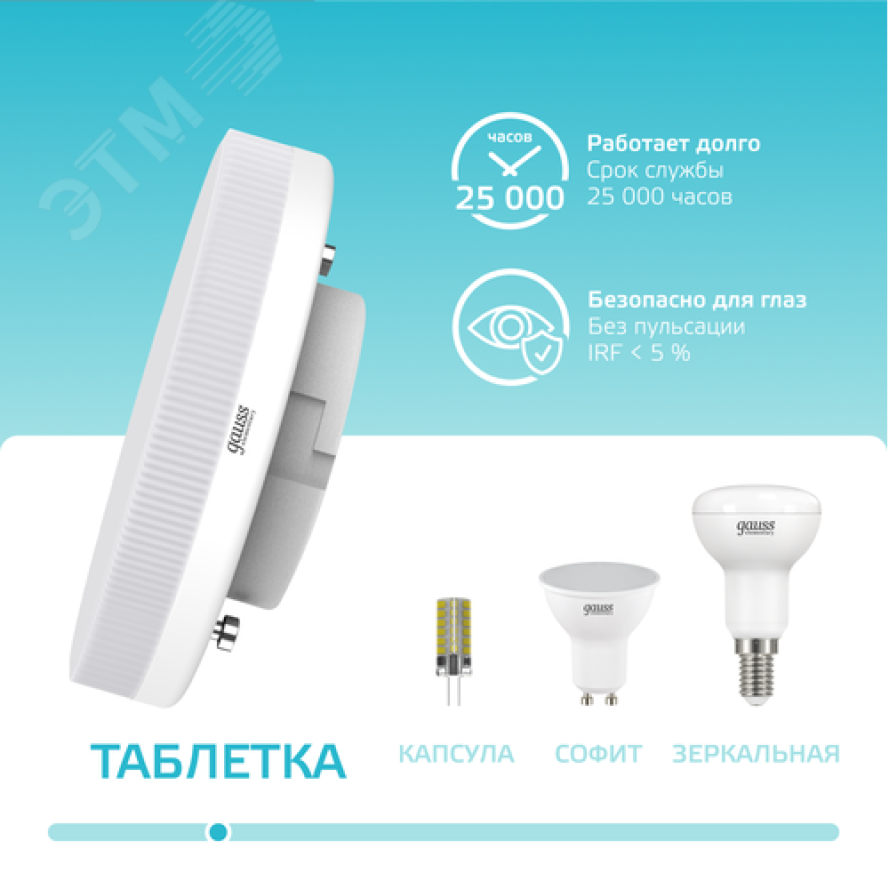 • Лампа светодиодная LED 13 Вт 920 лм 4100К таблетка нейтральный GX53 AC 220В Elementary