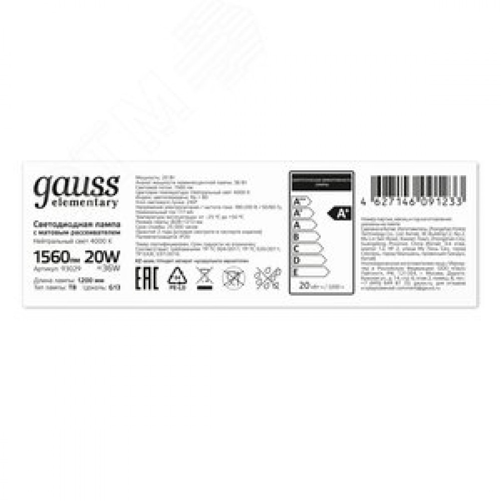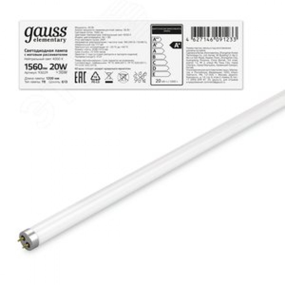 Технические характеристики Лампа светодиодная LED 20 Вт 1560 лм 4000К трубка Т8 нейтральный G13 AC 220В стеклянная Elementary
