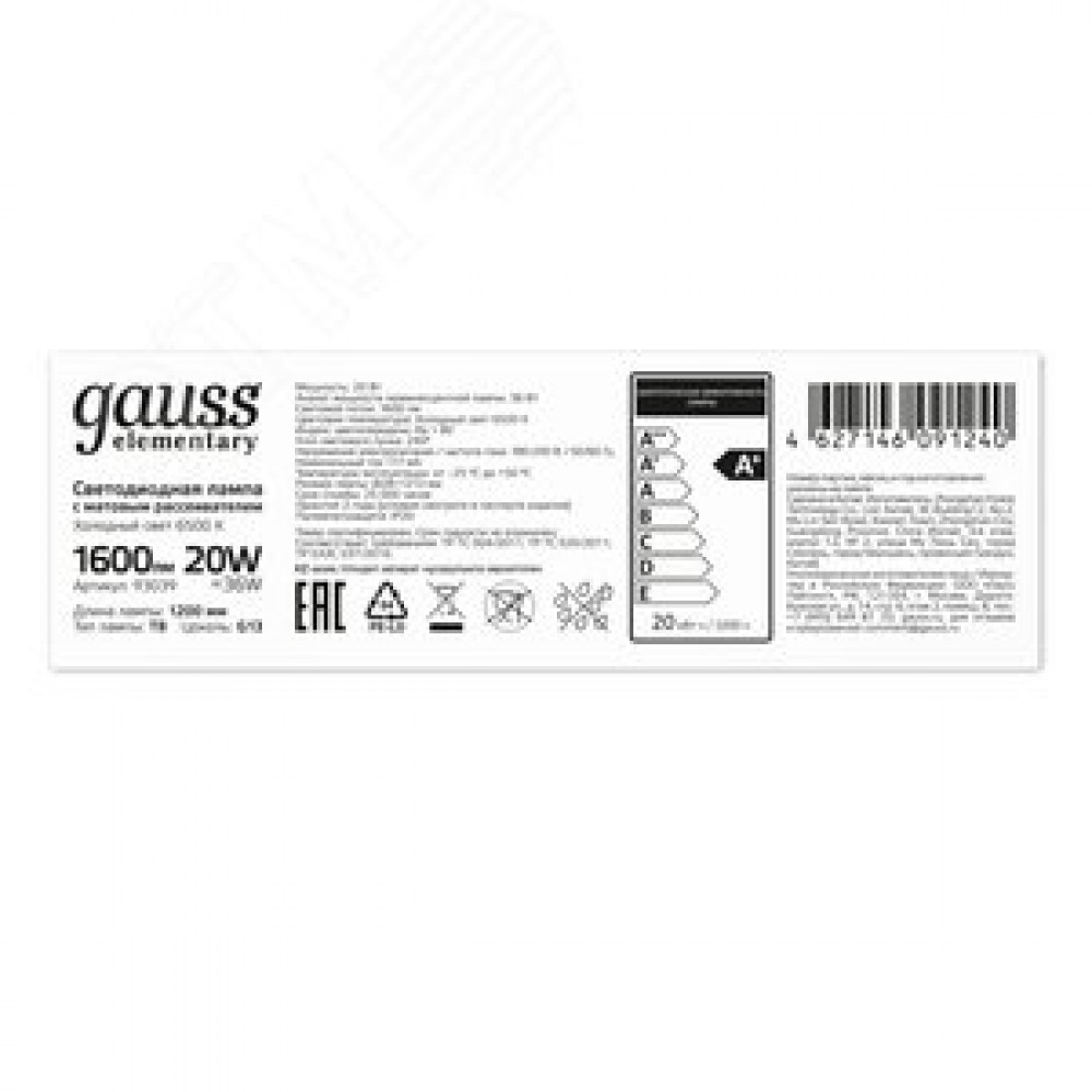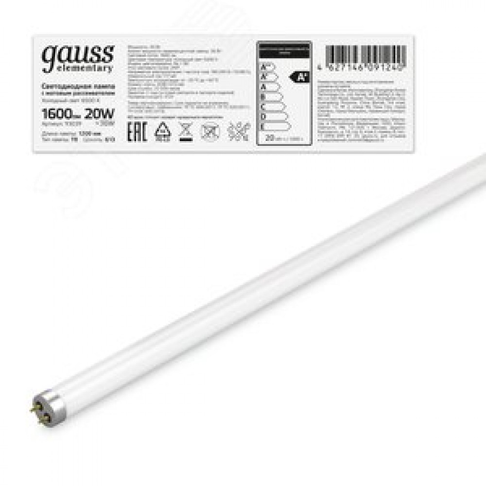 Технические характеристики Лампа светодиодная LED 20 Вт 1600 лм 6500К трубка Т8 холодный G13 AC 220В стеклянная Elementary