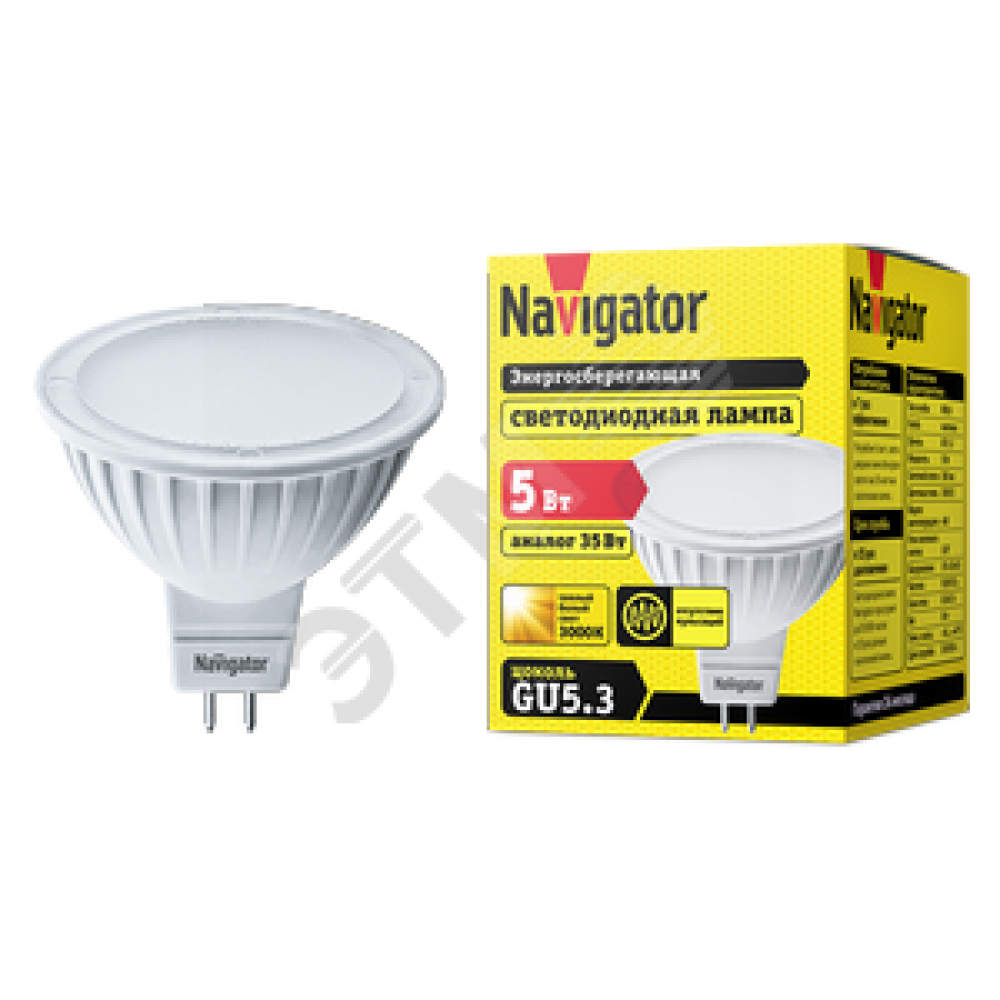 Технические характеристики Лампа светодиодная LED 5вт 230в GU5.3 тепло-белая