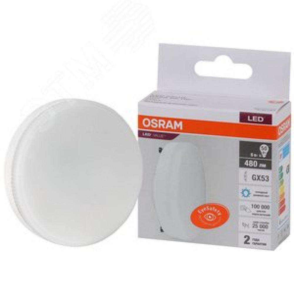 Лампа светодиодная LED 6 Вт GX53 6500К 480Лм таблетка 220 В (замена 50Вт) OSRAM