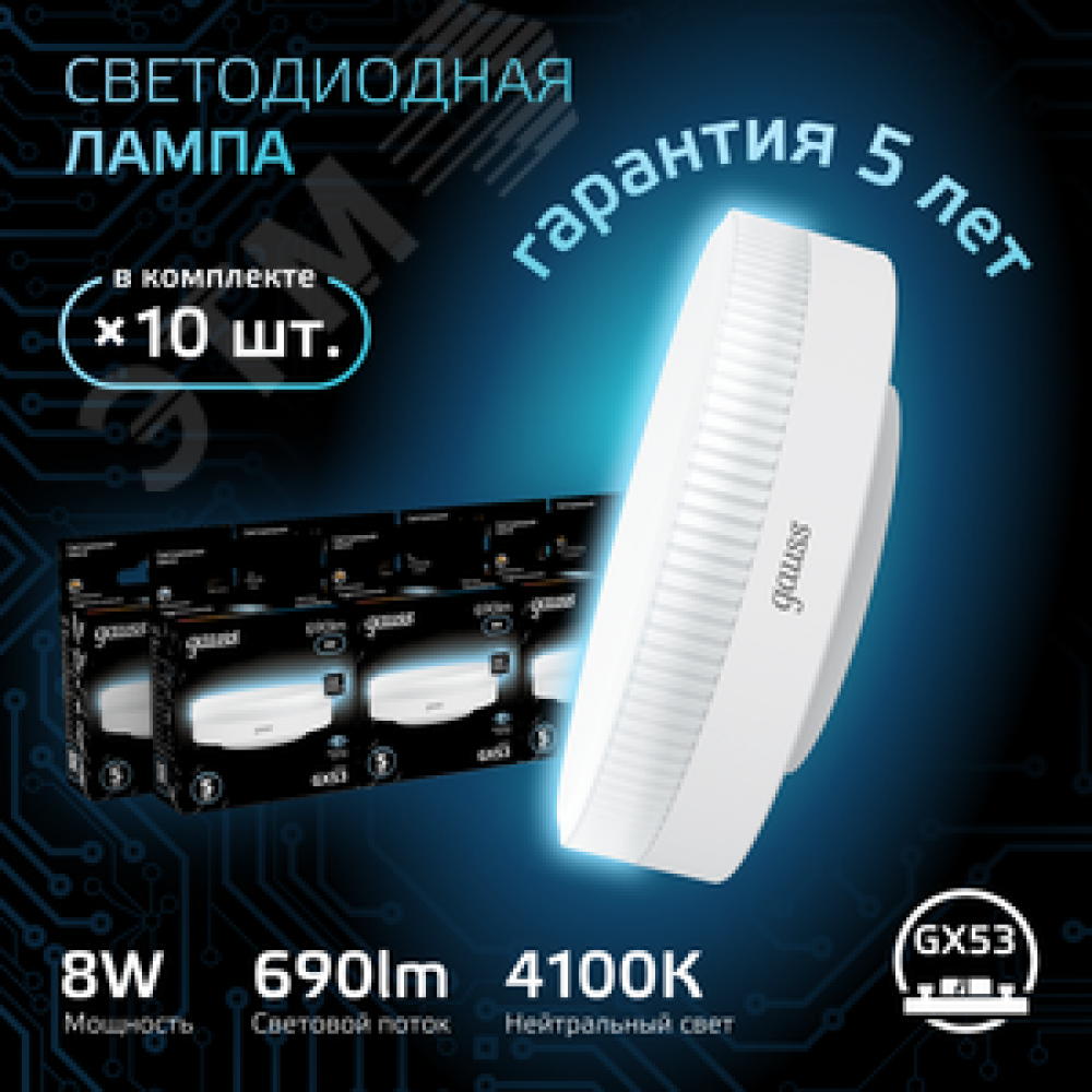 • Лампа светодиодная LED 8 Вт 690 лм 4100К таблетка нейтральный GX53 AC 220В Black