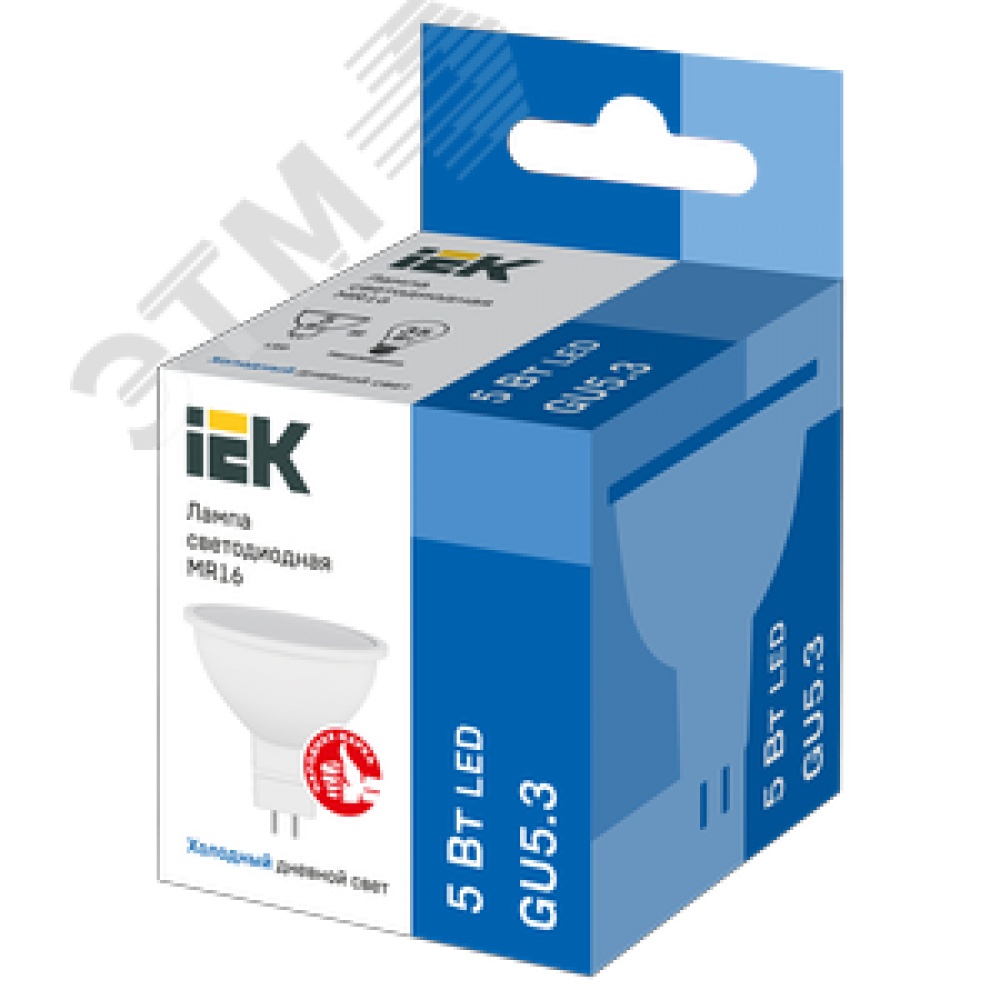 Технические характеристики Лампа светодиодная MR16 софит 5Вт 230В 6500К GU5.3