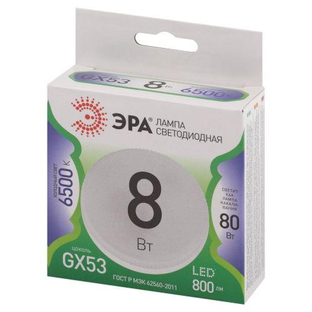 Технические характеристики Лампа светодиодная GREEN LINE GX-8W-865-GX53 GL 8Вт таблетка 6500К свет холод. GX53 Эра Б0067002
