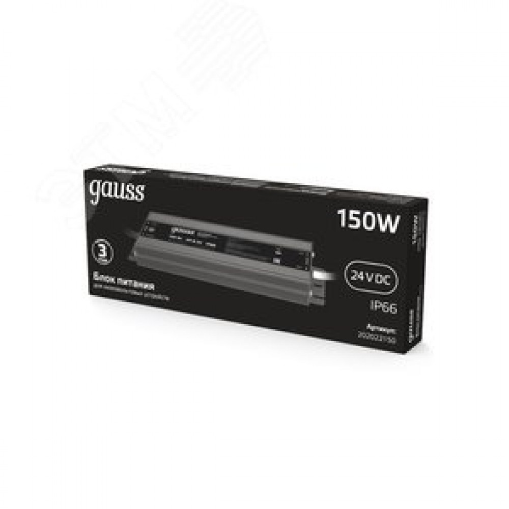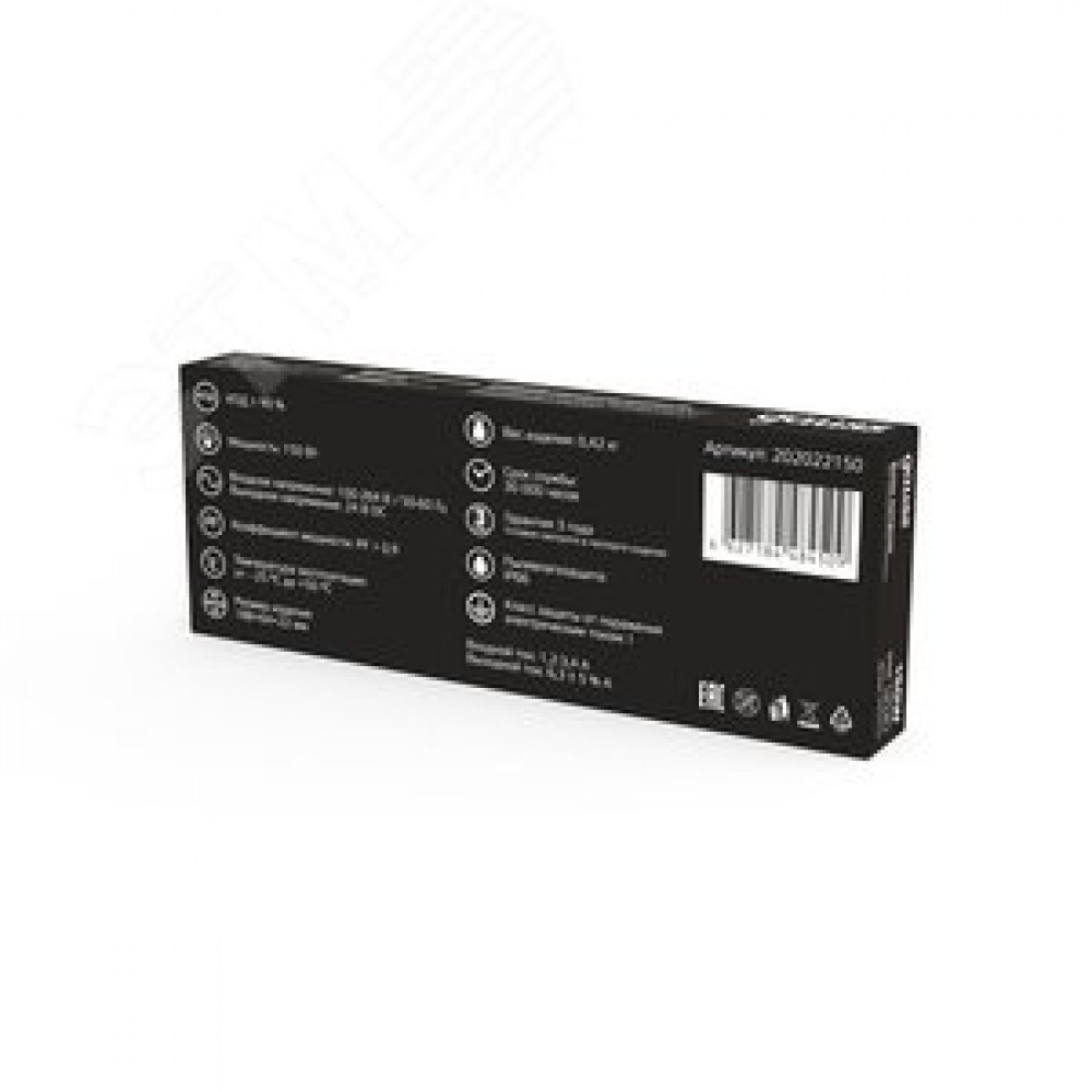 Технические характеристики Блок питания для светодиодной ленты 150 Вт AC 100-264В Uвых 24В IP66 188х64х22мм Black