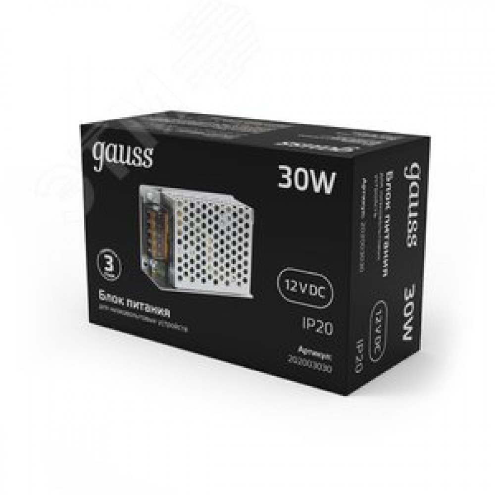 • Блок питания для светодиодной ленты 30 Вт AC 100-264В Uвых 12В IP20 90х57х38мм Black