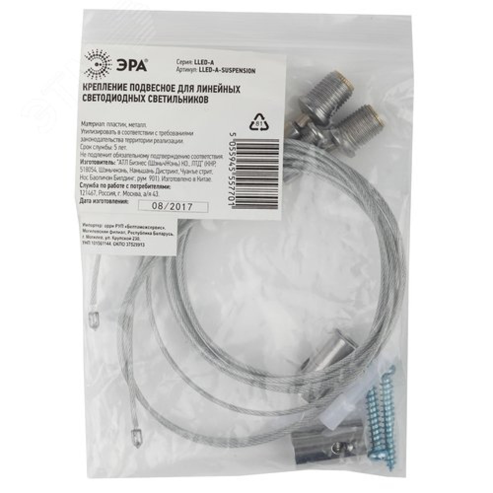 Технические характеристики Система подвеса светильников LLED-А-SUSPENSION В комплекте два металлических троса длиной 1м, крепежные элементы. Скоба в комплект не входит