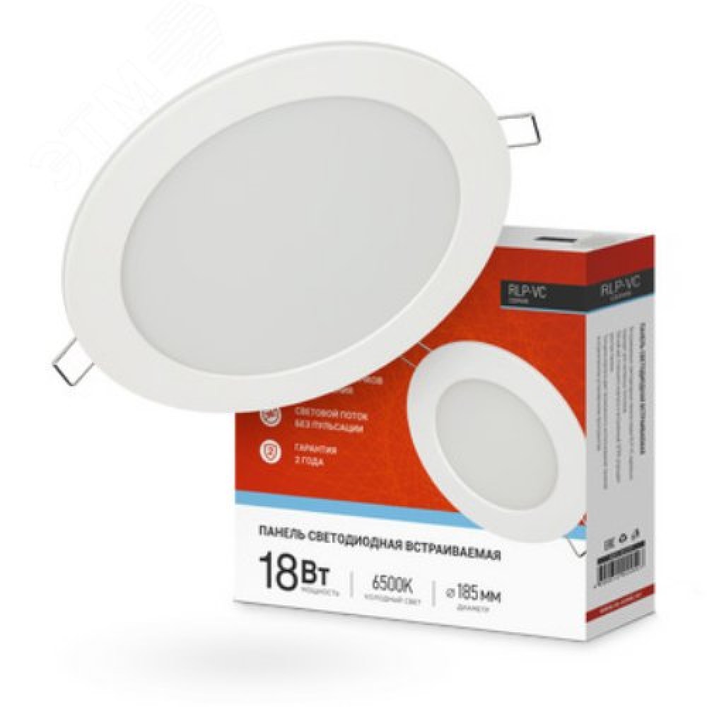 Технические характеристики Панель светодиодная встраиваемая круглая RLP-VC 18Вт 230В 6500К 1440Лм 185мм белая IP40 IN HOME