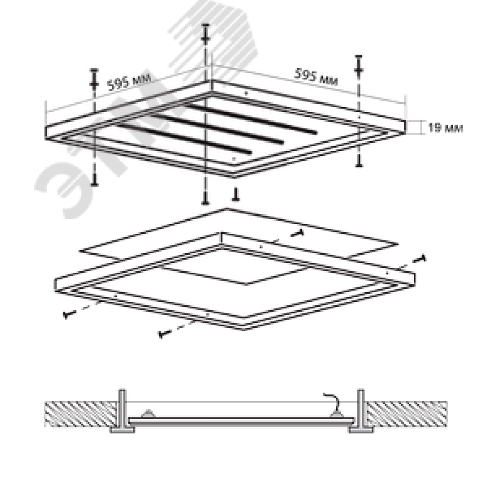 Технические характеристики Светильник светодиодный ДВО-36w 4000K 595х595 3600Лм с БАП IP40