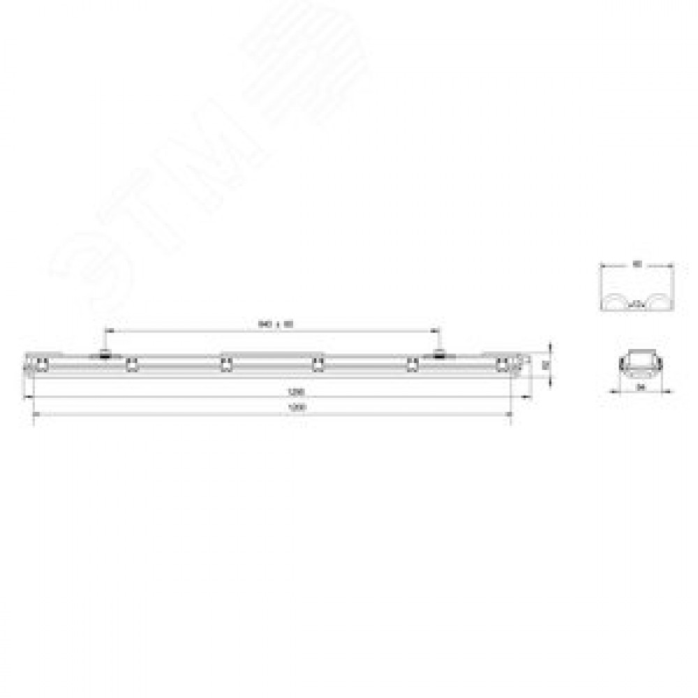 Технические характеристики Светильник под 2 светодиодные лампы T8 G13 c рассеивателем из поликарбоната 2x1200 SPP-102-0-002-120