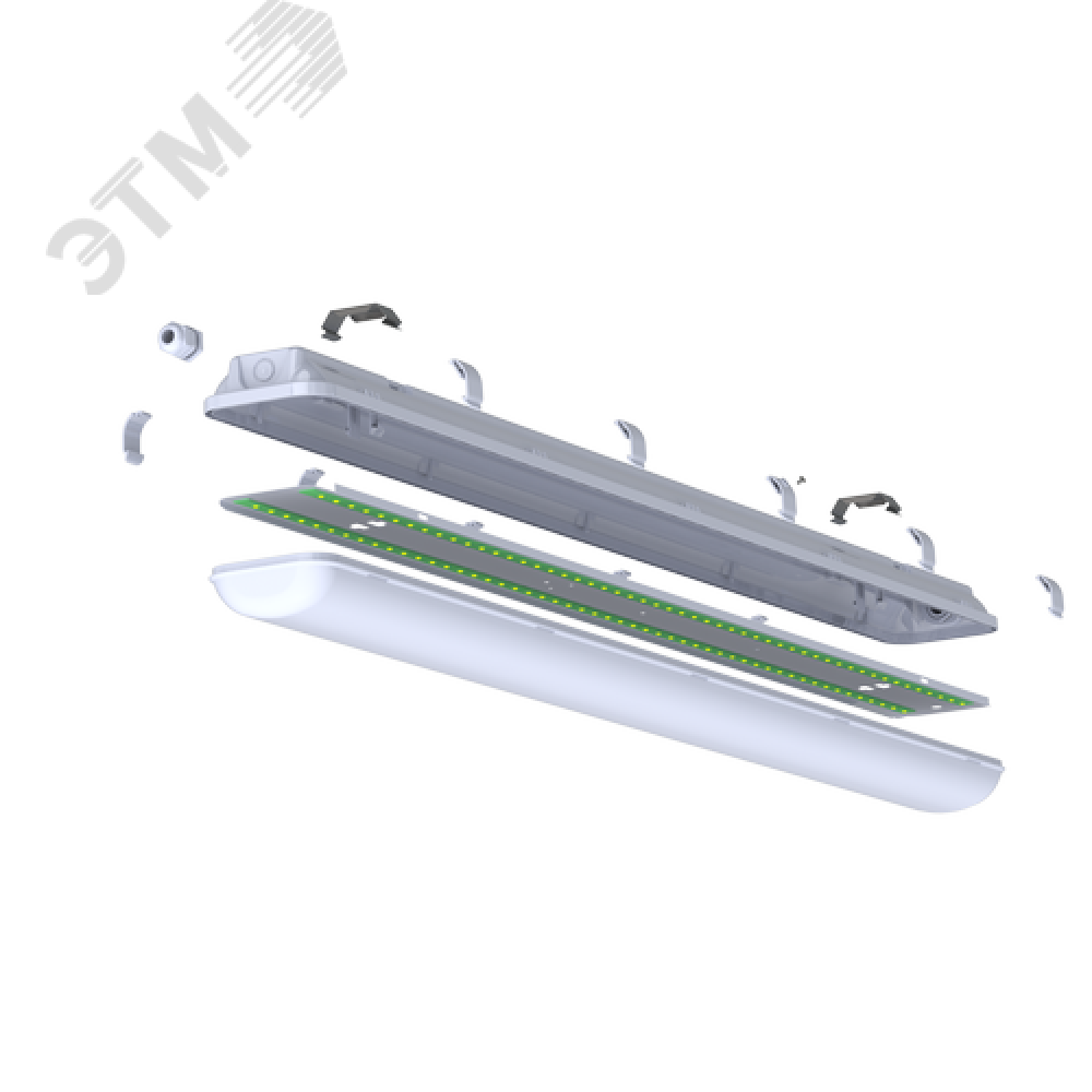 На складе Код товара: etm-5588567 Светильник светодиодный ДСП-36Вт 4320лм 6500K IP65 серый 1,2 м ECO CLASS со сквозной проводкой